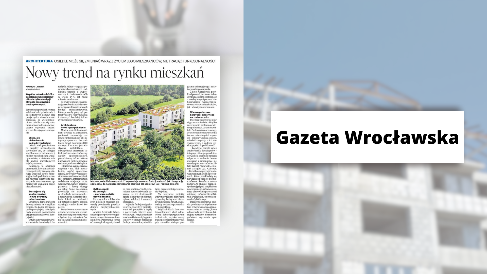 – Korzyści z takiego podejścia są wielowymiarowe. Seniorzy unikają izolacji i zyskują codzienny kontakt z innymi mieszkańcami, młodsze pokolenia korzystają z doświadczenia starszych, a rodziny z dziećmi mogą liczyć na lokalną, sąsiedzką sieć wsparcia. Tego typu osiedla są też atrakcyjne dla deweloperów – integrują różne grupy odbiorców, dzięki czemu są bardziej odporne na wahania demograficzne i zmieniające się trendy rynkowe. Dodatkowo sprzyjają budowaniu silnych więzi społecznych, które przekładają się na większe poczucie bezpieczeństwa i komfortu mieszkańców. W dłuższej perspektywie stają się też przykładem nowoczesnego, zrównoważonego planowania przestrzeni miejskiej – mówi architekt Witold Padlewski, członek zarządu Q3D Concept.
